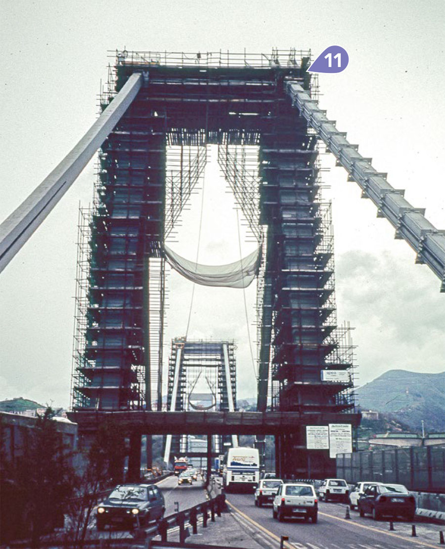 少数桥梁如此独特是有原因的 — — 归根结底归结为经过验证的建设方法问题。桥梁结构要突出化,它需要重新点播建设思想,而尽管它可能赢得设计师赞美它,它需要一定程度的实验PolceveraViadu路段通常由数组钢电缆支持 并附于数列垂直元皇后飞里桥 苏格兰 和法兰西Millau桥使用此工程设计重要的是二维钢电缆 定义构造设计特征当Riccardo Morandi设计PolceveraVia