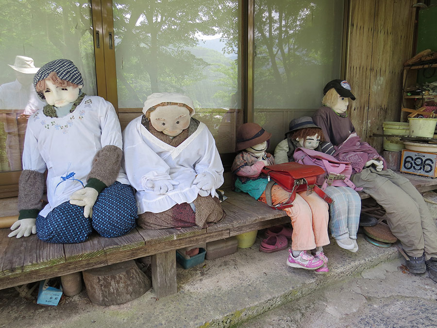 今天,稻草人分布全村,包括沿路边、废弃学校内,并等待公交站或废弃房屋前乡村生活的一些重现方面 — — 犁田、钓鱼甚至婚礼 — — 和其他一些方面则见诸于随机外表,即与邻里聊天。至2020年,村里约300稻草人远多于常住者(27人,全部超过70岁)。其中一些实事求是地显示谷歌街视图图文模(用特征保护谷歌摄像头抓取者的身份)对稻草人的感觉混杂在一起,有些居民发现他们安心,