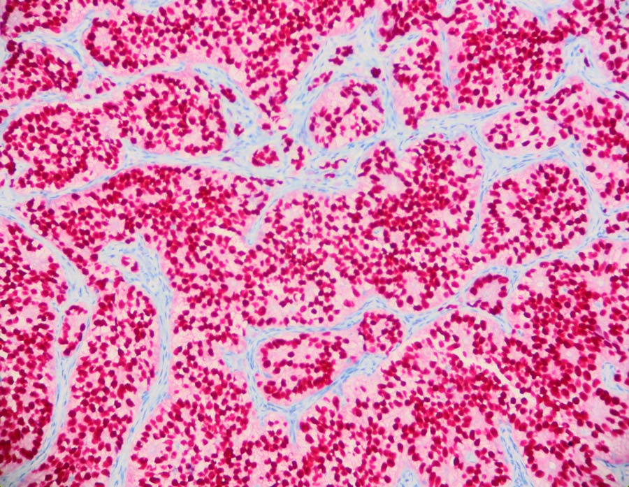 NEPC高度攻击性并常常诊断不足,因为缺少足够具体的标识临床医生通常监控蛋白素水平,即前列腺抗原(PSA),当荷尔蒙治疗停止工作时该抗原会增加NEPC较难识别和监测,因为它通过神经内分泌分化细胞重编机制产生表示NEPC细胞显示神经内分泌细胞特征,如神经元标记细胞重编程结果产生大规模软质转移,即使PSA低血位高表达度神经标记测量,如enolase2,chrogranina和synaptophen但这些标记缺乏特性,促使研究人员寻找替代物此外,NEPC常有多量转移病人清单,防止临床医生执行产生结论性结果的生物素基于以上原因,NEPC预测极差,5年生存率不足20%